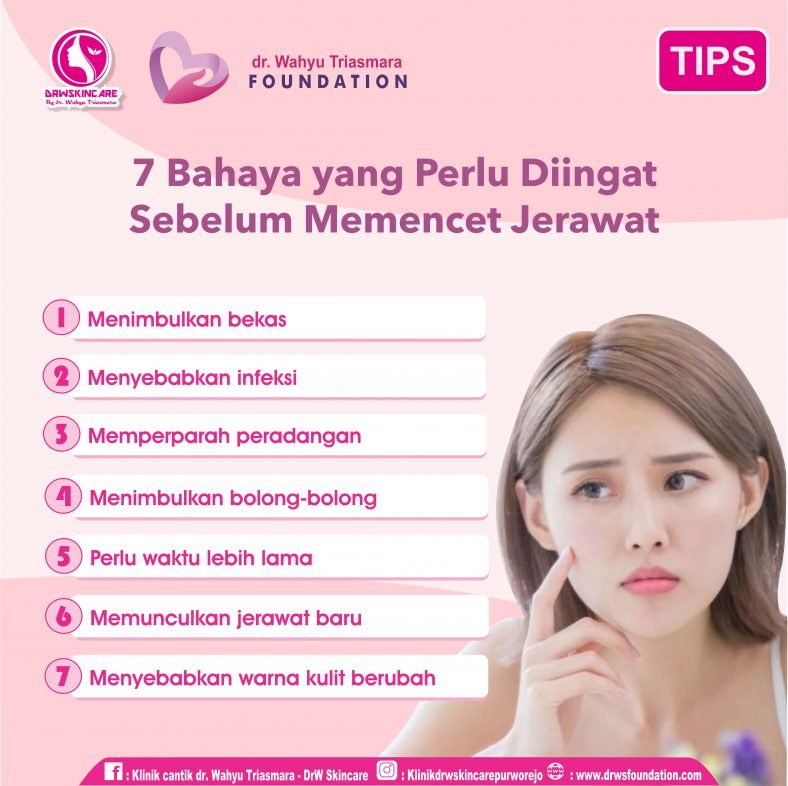 Padahal rasa lega setelah memencet jerawat ini hanya sesaat, selebihnya adalah risiko yang mengintai.Pilihan memencet jerawat bisa berbuntut panjang. Selain menyakitkan, juga bakal meninggalkan bekas luka. Dan selanjutnya, Anda akan bersusah payah menutupinya dengan concealer, sebagian berhasil tapi sialnya sebagian lain gagal.